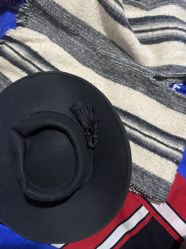 Fotorepresentación de un poncho y un gorro “huaso elegante”
