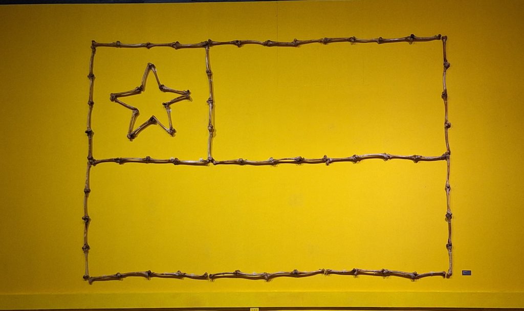Si bien como se mencionaba anteriormente, la exhibición está compuesta por cinco espacios, en cada uno de ellos destaca un detalle en específico: la presencia de huesos humanos. Es más, desde la entrada, se impone tanto una torre de estos, en conjunto con el contorno de la bandera chilena que pareciera estar construida a base de fémures. Todos están puestos por una razón: ejemplificar la violencia vivida en tiempos dictatoriales en el país.