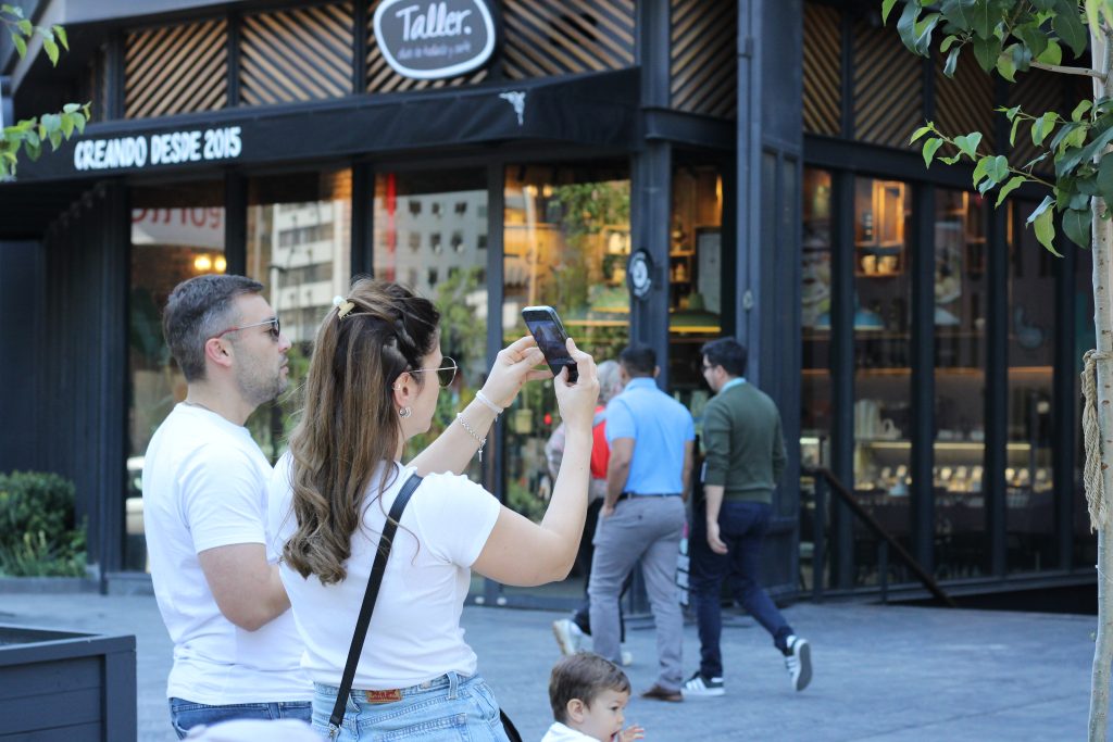 Decenas de peatones se detienen frente a la tienda para tomar fotos del frontis de la tienda – Imagen propia